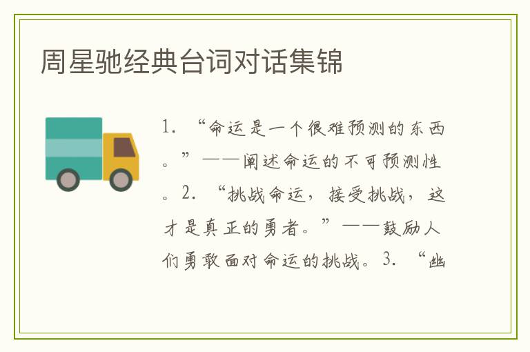在周星驰的电影中,幽默无处不在。他的搞笑台词往往富含智慧和哲理,给观众带来欢乐的同时,也能引发深思。