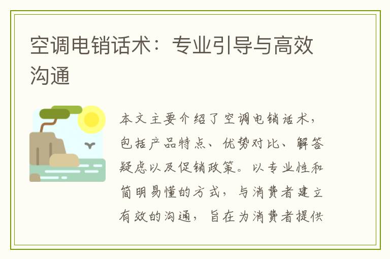 当消费者考虑购买空调时,我们作为专业的电销人员,应该如何向他们介绍我们的产品呢?下面,我将为大家分享一些空调电销话术,旨在以专业性和简明易懂的方式,与消费者建立有效的沟通。