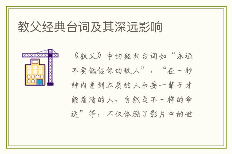 这些经典台词背后蕴含着深刻的哲学思想和生活智慧。它们不仅仅是电影中的对话,更是对人生、家族、权力、决策等主题的深刻反思。通过台词,我们可以感受到角色们的世界观、人生观和价值观。