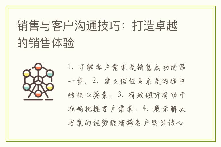当客户提出异议时,销售人员应耐心解答,并提供解决方案。同时,做好售后跟进工作也至关重要。及时与客户保持联系,解答使用过程中的问题,提供必要的服务支持。