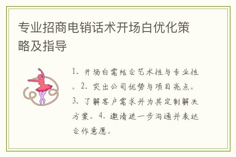 专业招商电销话术开场白优化策略及指导