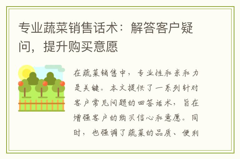 专业蔬菜销售话术:解答客户疑问,提升购买意愿