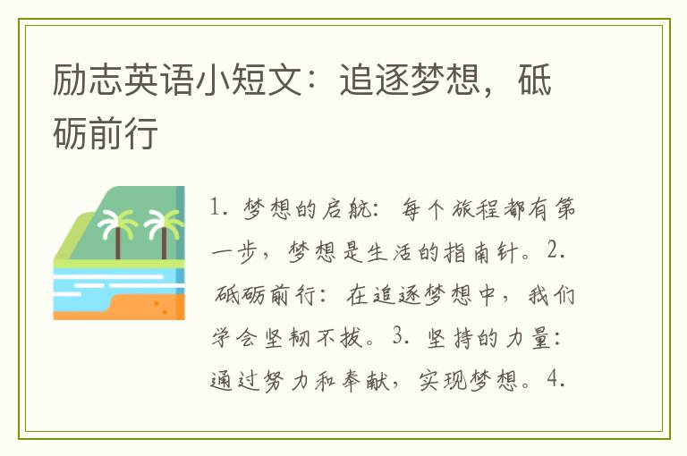 坚持是成功的关键。无论梦想多么艰难,都不要放弃。通过努力和奉献,你可以实现任何目标。