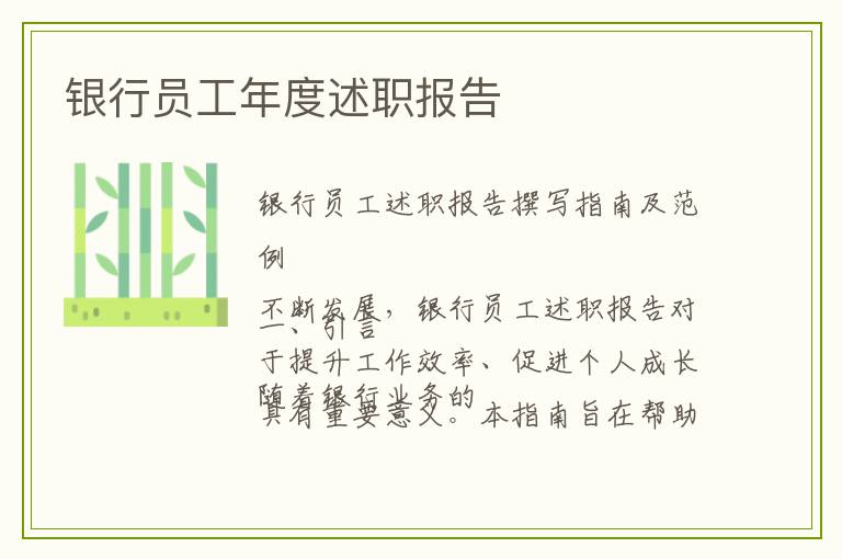 :银行员工、述职报告、工作总结、成绩亮点、问题分析、展望未来。 希望本指南和范例能帮助您撰写出专业、简明扼要的银行员工述职报告。