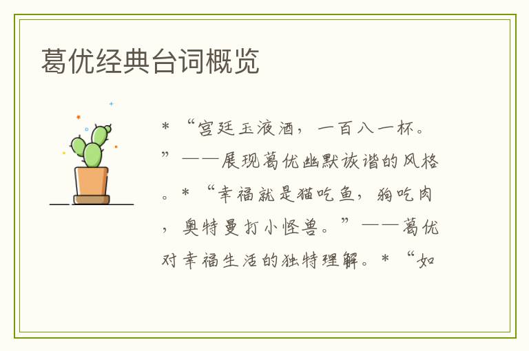 葛优,中国著名演员,以其独特的表演风格和幽默的台词赢得了广大观众的喜爱。以下是他的一些经典台词及其背后的深意。