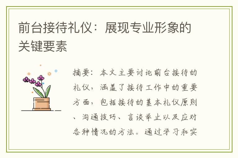 本文标题:前台接待礼仪:展现专业形象的关键要素