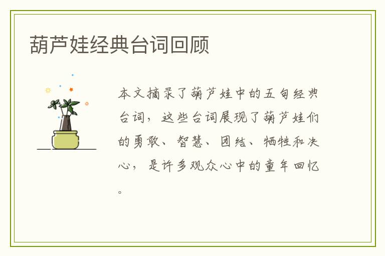 葫芦娃经典台词回顾