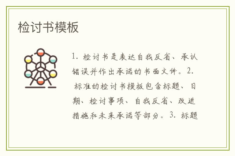 标准的检讨书模板通常包含以下几个部分:标题、日期、检讨事项、自我反省、改进措施和未来承诺。