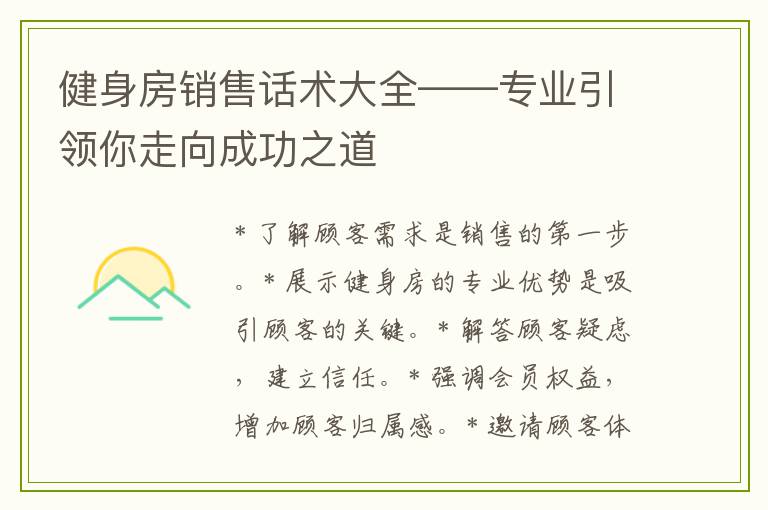 随着生活品质的提升,健身已成为现代人的日常活动。作为健身房销售,掌握专业的话术不仅能让顾客感受到服务的专业度,更能促成销售。