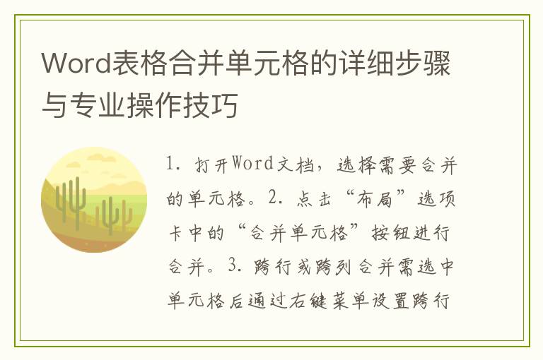 在日常办公中,我们经常需要使用Word制作表格,而合并单元格是其中一项基础且重要的操作。下面将详细介绍如何合并Word表格中的单元格,并提供一些专业操作技巧。
