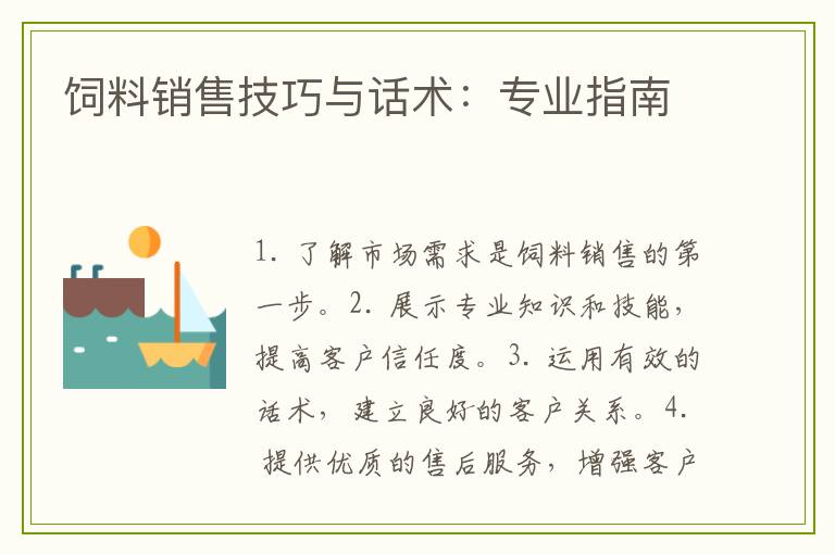 随着养殖业的发展,饲料销售行业日益繁荣。如何在激烈的市场竞争中脱颖而出,掌握饲料销售技巧和话术至关重要。