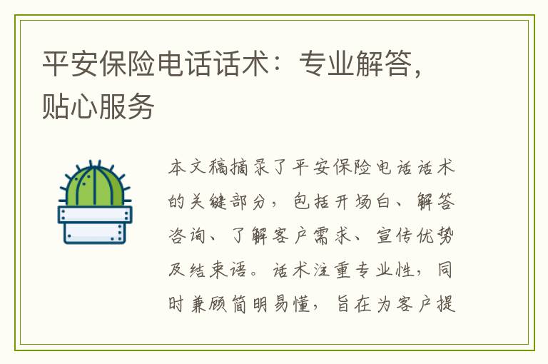 您好,这里是平安保险,感谢您致电咨询。请问您需要了解关于保险方面的哪些信息或帮助?我们会为您提供专业的解答和服务。二、解答保险咨询