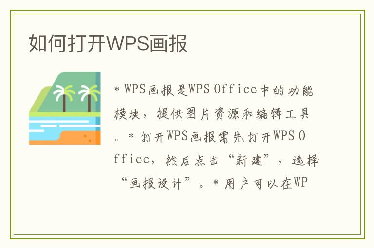 WPS画报是WPS Office软件中的一个功能模块,主要为用户提供丰富的图片资源和编辑工具,帮助用户快速创建和编辑具有吸引力的图片作品。要打开WPS画报,首先需要确保已经安装了WPS Office软件。