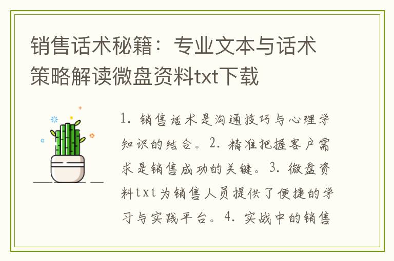 销售话术秘籍:专业文本与话术策略解读微盘资料txt下载