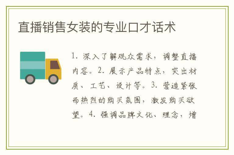 随着互联网的快速发展,直播销售已成为现代电商的重要营销模式之一。在女装直播销售中,专业的话术不仅能吸引观众的注意力,还能提高销售转化率。下面,我们就来探讨一下女装直播销售中的专业口才话术。