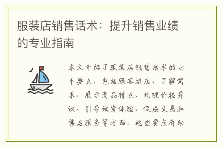 在当今竞争激烈的服装市场,掌握一套专业且富有吸引力的销售话术是每位服装店员必备的技能。以下是一些有助于提升销售业绩的销售话术要点。