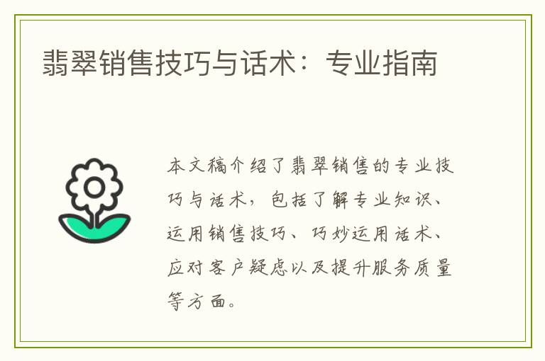 :与客户沟通,了解其购买目的、预算、喜好等,从而推荐合适的翡翠产品。 3.