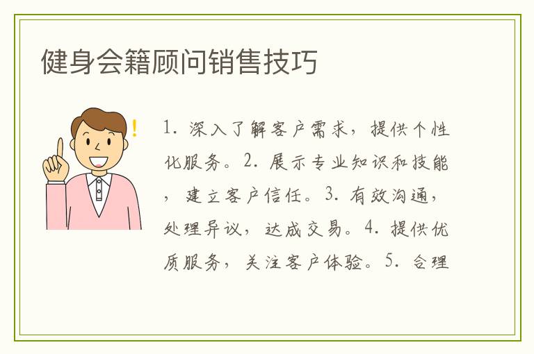 随着健身行业的蓬勃发展,健身会籍顾问的角色愈发重要。他们不仅需要了解会员需求,还要掌握一定的销售技巧。以下是健身会籍顾问在销售过程中可以采用的一些专业技巧。