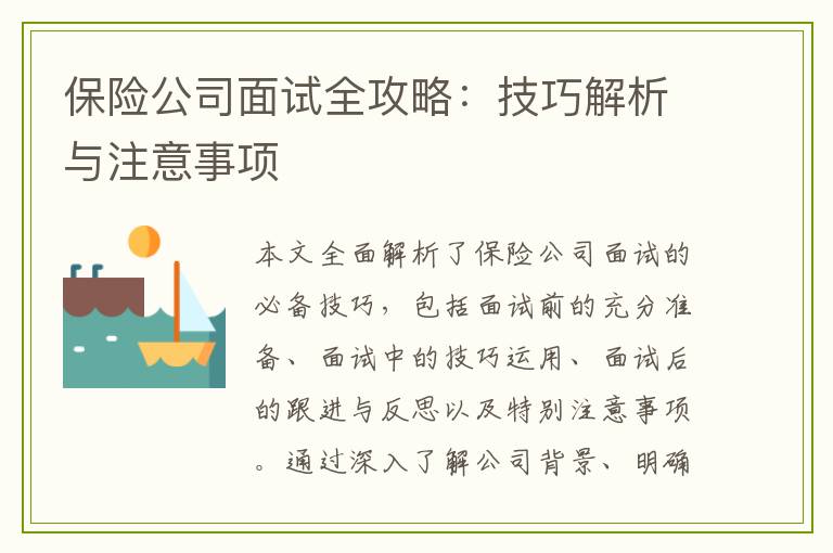 在竞争激烈的保险行业中,面试是通往成功职业生涯的关键一步。无论是初入职场的新人,还是寻求职业晋升的资深从业者,掌握有效的面试技巧和注意事项对于脱颖而出至关重要。本文将为您全面解析保险公司面试的必备技巧,并提供实用的注意事项,帮助您在面试中展现最佳状态。