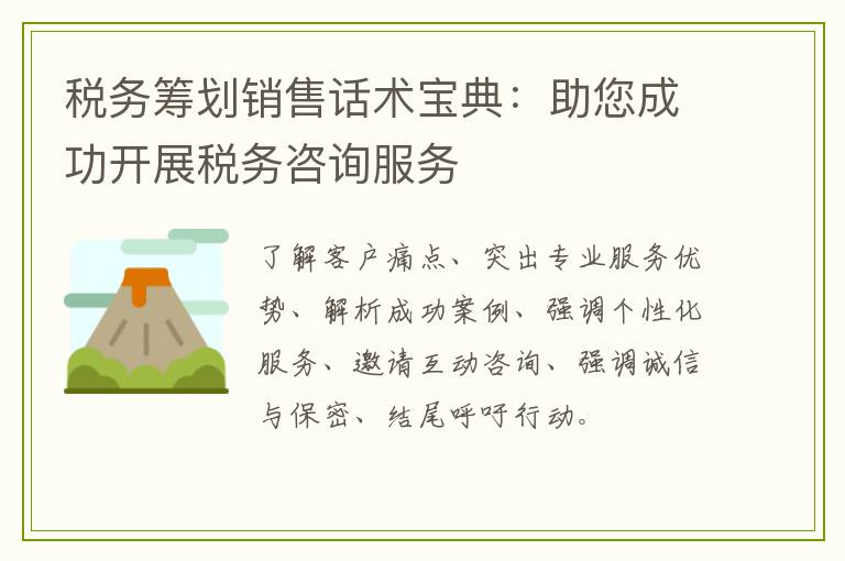 税务筹划销售话术宝典:助您成功开展税务咨询服务