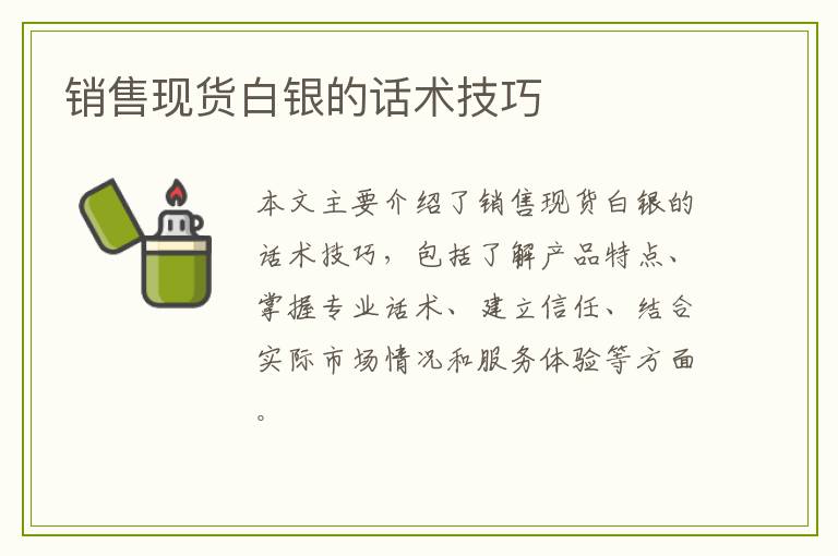 销售现货白银需要综合应用专业知识、话术技巧和服务理念。通过深入了解产品特点、掌握专业话术、建立信任、结合实际市场情况和服务体验,将更有效地推动销售进程。
