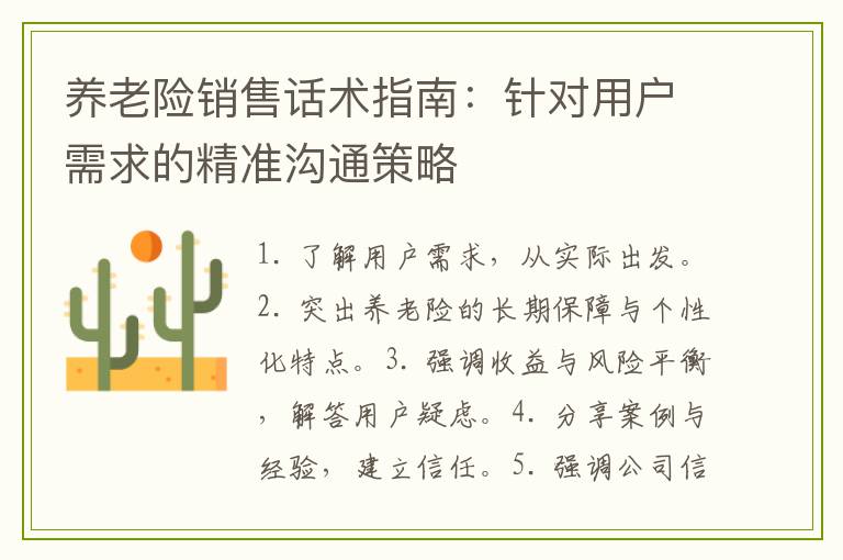养老险销售话术指南:针对用户需求的精准沟通策略