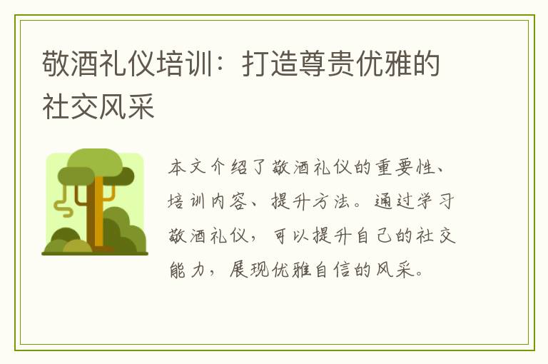 随着社交场合的增多,敬酒礼仪逐渐成为展示个人修养与品位的重要环节。一个得体而优雅的敬酒礼仪,不仅能展现个人的社交风采,更有助于增进人际关系与友谊。因此,对敬酒礼仪的培训变得越来越重要。本文将介绍敬酒礼仪的基本知识,帮助您更好地掌握这一技能。