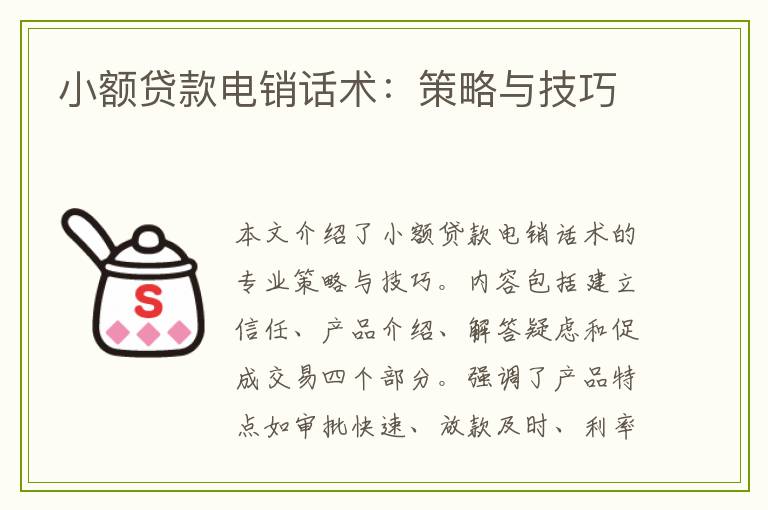客户您好,我是XX金融机构的小额贷款专员。在此,我为您介绍一款灵活便捷的小额贷款产品。首先,我想了解一下您近期是否有资金周转的需求?同时,我们非常重视客户隐私,请放心,您的信息会得到妥善的处理。