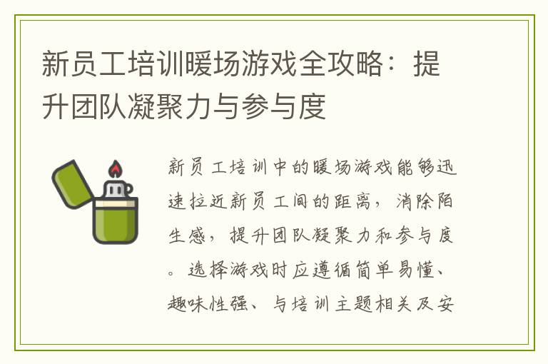 3. 提升参与度:有趣的暖场游戏能激发新员工的积极性和参与热情,为接下来的培训活动打下良好的氛围基础。
