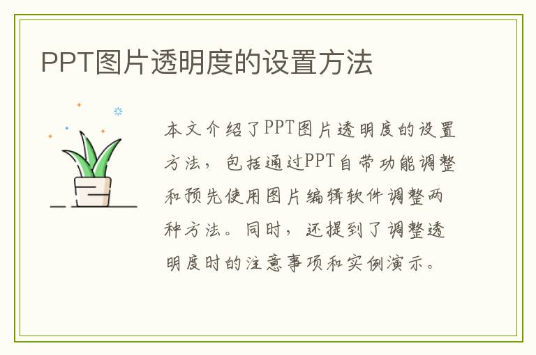 在PPT制作过程中,为了使图片与背景或其他元素更好地融合,我们常常需要调整图片的透明度。掌握如何设置图片透明度,能够让PPT更加生动且专业。