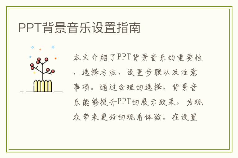 1. 在PPT软件中直接插入音乐:大多数PPT编辑软件支持直接插入音频文件,并将其设置为背景音乐。