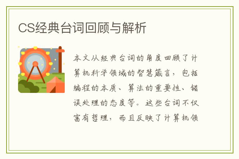 在计算机科学(CS)的世界里,有许多经典台词,它们不仅富有哲理,而且反映了计算机领域的核心思想和精神。以下是对一些经典台词的回顾与解析。