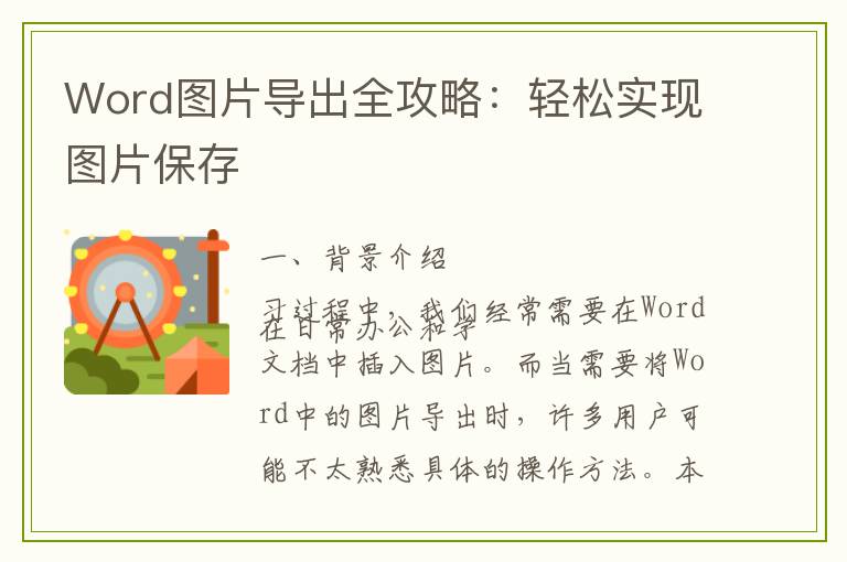 在日常办公和学习过程中,我们经常需要在Word文档中插入图片。而当需要将Word中的图片导出时,许多用户可能不太熟悉具体的操作方法。本文将详细介绍如何在Word中导出图片,帮助您轻松实现图片保存。